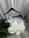 Descubrí el Top Margarita, confeccionado en lino con un delicado trabado que aporta un toque de sofisticación. Su diseño incluye un elástico en la espalda que asegura un ajuste cómodo y perfecto.